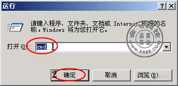 二、点击运行后输入 cmd 命令,点击 确定