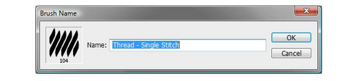 使用矩形选框工具(M),选中你所创建的针脚线,确保你的背景是透明的,然后创建笔刷预设。 你可以转到定义笔刷预设,然后给它命名。如下图所示:
