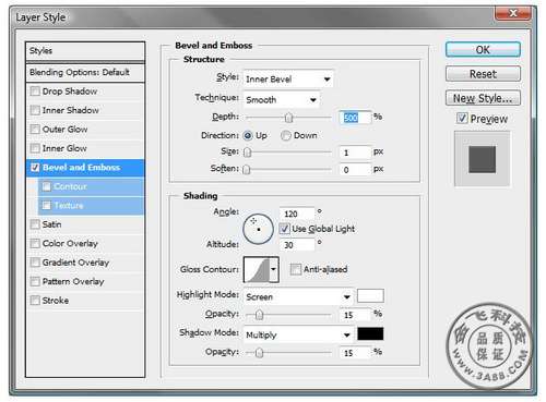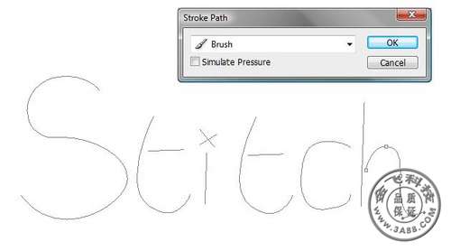 为你的针脚线选择一个合适的颜色,然后使用 photoshop 钢笔工具创建一个名字路径或者是你喜欢的词。 保持你的路径为选中状态右击应用描边路径,确保笔刷为选中,注意不要选择模拟压力。 最后我们应用一下斜面和浮雕来设置一个阴影和高光。如图下面三幅图所示: