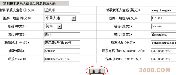 5、点击查询结果页面中的 没有被注册,立即注册>> 按钮,出现域名注册页面,如下图所示: