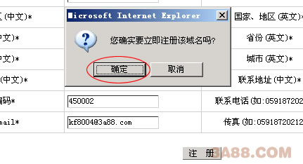 7、点击上图中所示的 注册 按钮,出现确认注册对话框,如下图所示: