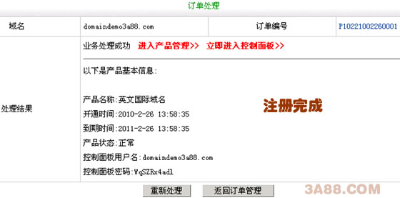 10、至此域名注册部分就全部完成了。