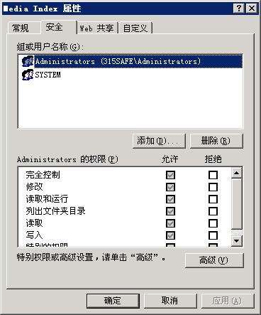 先说关于系统的NTFS磁盘权限设置,大家可能看得都多了,但是2003服务器有些细节地方需要注意的。
