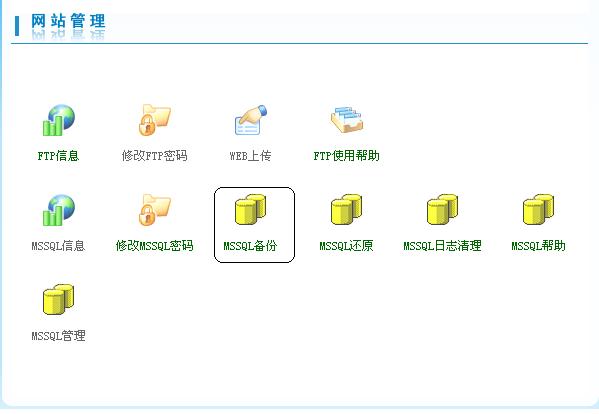 一、打开相应MSSQL数据库产品的控制面板,选择 MSSQL备份 按钮