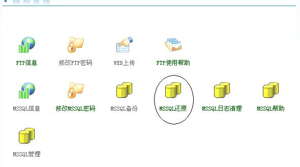 一、进入相应MSSQL数据库产品的控制面板,点击 MSSQL还原 按钮